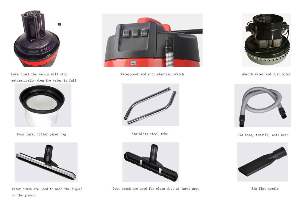 CJ98 estándar con un kit de limpieza de 48 mm de diámetro, que puede evitar con eficacia las obstrucciones, sin polvo y sin problemas. También incluye una manguera resistente al desgaste de 3 m de largo, un codo tipo S de aleación de aluminio, un cepillo para polvo de aluminio, succión plana y otra limpieza. herramienta. Equipado con una interfaz push-pull frontal. El usuario puede elegir el empujador frontal de nuestra empresa y el push-pull húmedo y seco con un ancho de 70 cm, que puede limpiar la superficie abierta de manera eficiente y ahorradora de mano de obra.