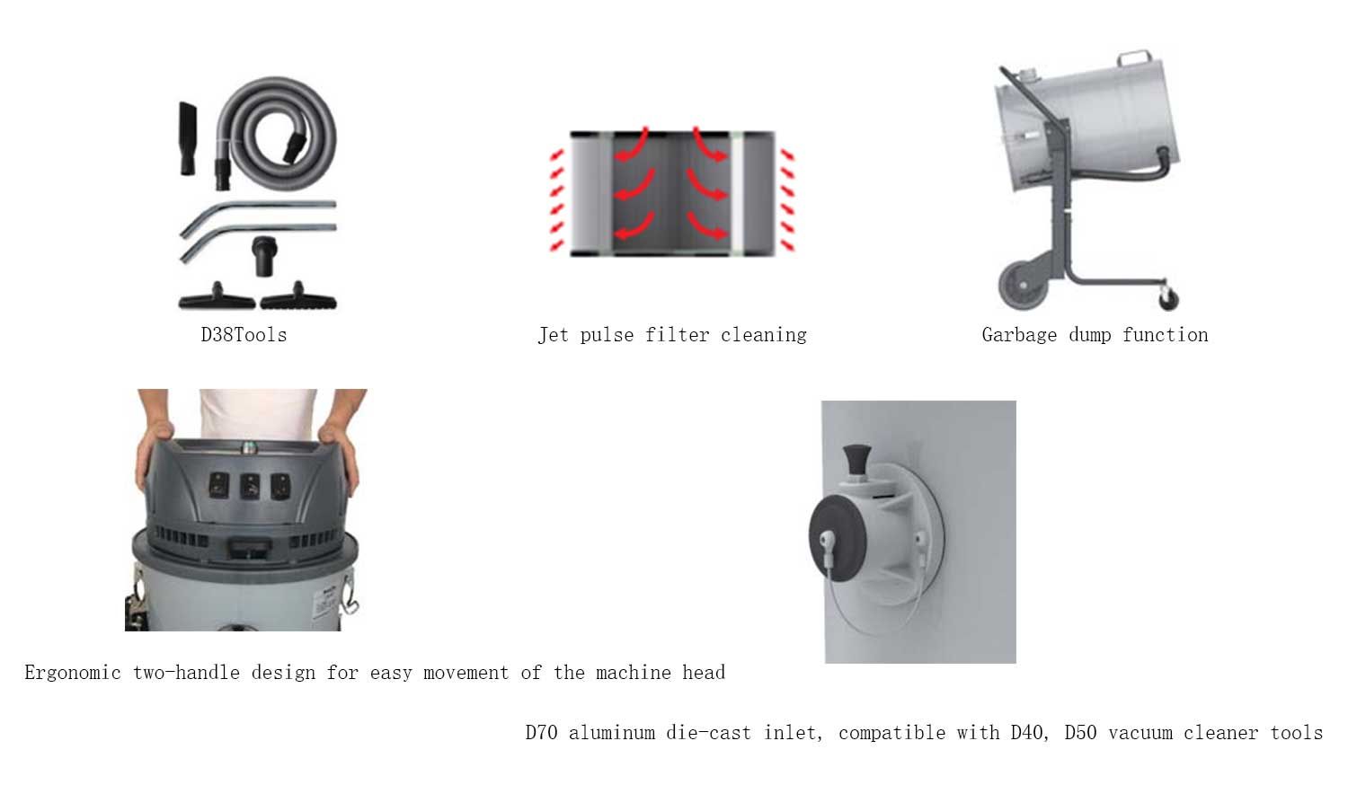 1. Contiene tres motores de absorción de polvo y agua de cobre de grado industrial, que se pueden controlar de forma independiente con interruptores.