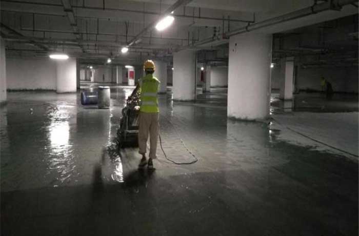 (3) Limpieza de la superficie de la base: Después de completar el procedimiento de 2 a 4 horas después de la construcción, humedezca y limpie el suelo. (Usando el poder penetrante del agua para llevar el material a una capa más profunda, evitando que los residuos de la reacción formen manchas blancas que son difíciles de limpiar).